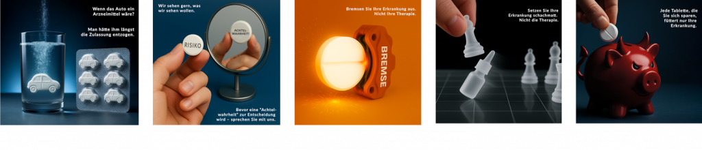 Das Problem: Die positiven Effekte der Therapie zeigen sich häufig erst später. Die Risiken eines Absetzens jedoch entstehen schleichend und werden im Moment der Entscheidung kaum wahrgenommen.